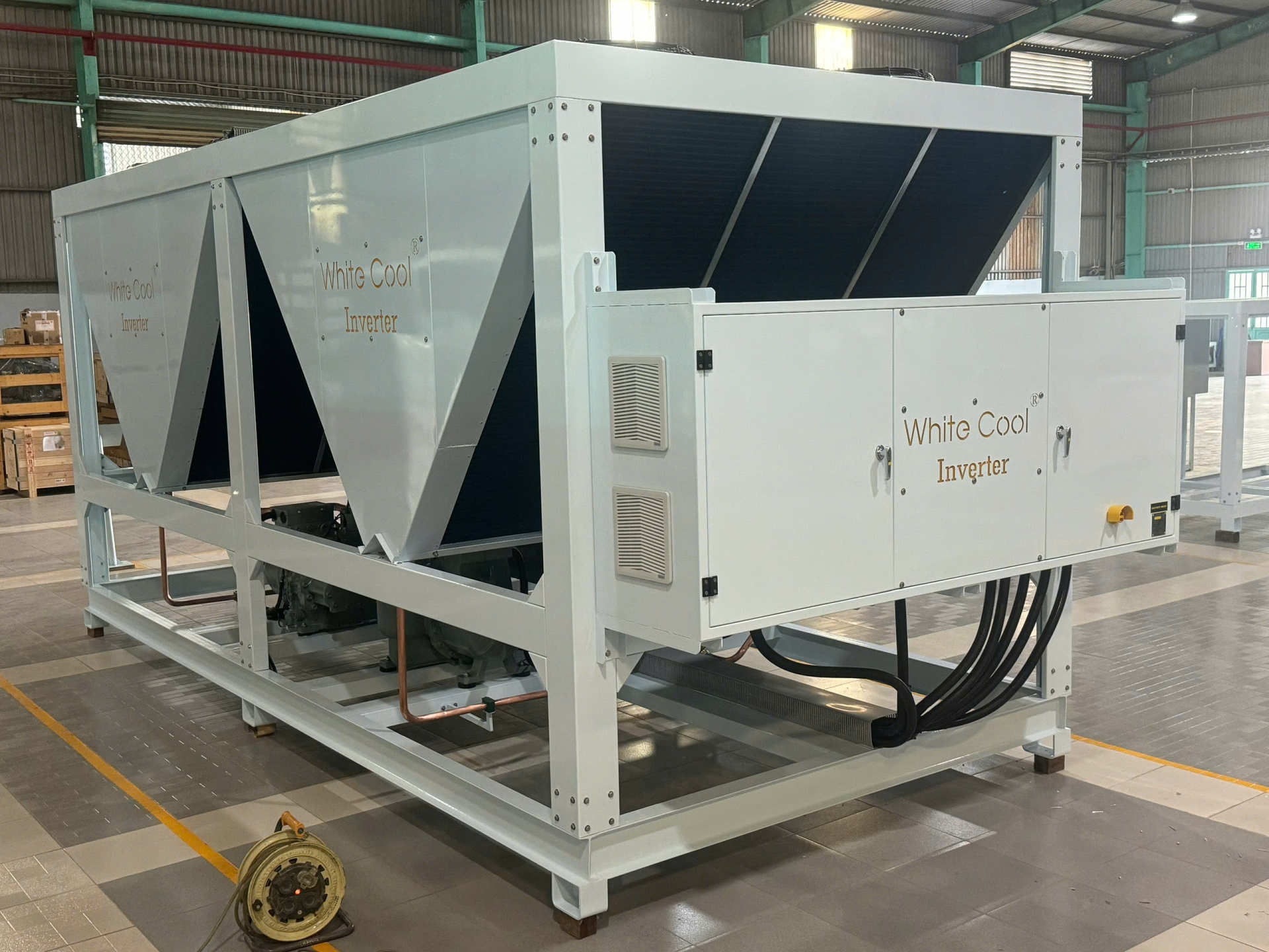 Chiller 100HP Inverter - Gió giải nhiệt là một trong những hệ thống làm lạnh đột phá, mang đến giải pháp hiệu quả và tiết kiệm năng lượng cho các công trình công nghiệp và thương mại. Với công suất mạnh mẽ 100HP, sản phẩm này không chỉ đáp ứng nhu cầu làm lạnh lớn mà còn đảm bảo hoạt động bền bỉ và ổn định.